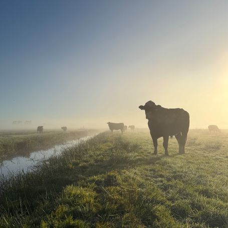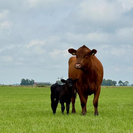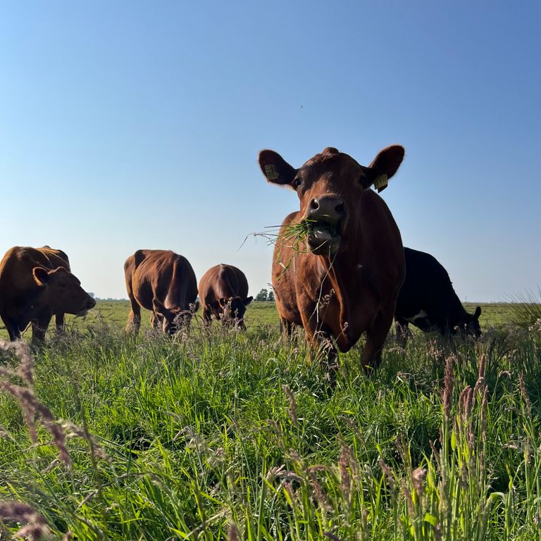 Unsere Rinder laufen in Herden und unterstützen beim Wiesenvogelschutz.